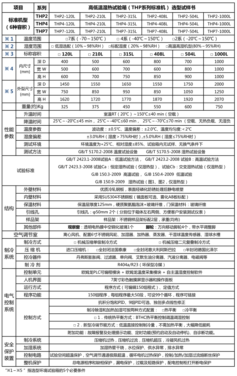 富易达FUYIDA-THP系列-高低温交变湿热试验箱| 选型参数表